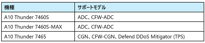 新ハイミドルレンジモデル群は第6世代ハードウェアプラットフォームを採用している。この新プラットフォーム上でAI-ReadyなA10独自OS、Advanced Core Operating System (ACOS) の最新版「ACOS ver. 7」が動作する。今回、「A10 Thunder 7460S」、「A10 Thunder 7460S-MAX」、「A10 Thunder 7465」の3機種を新規に開発した。