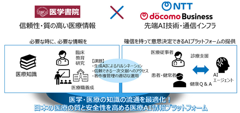 医学書院、NTT、NTTドコモビジネスが、純国産の医療AI情報プラットフォームの共同開発に向けた協業に合意