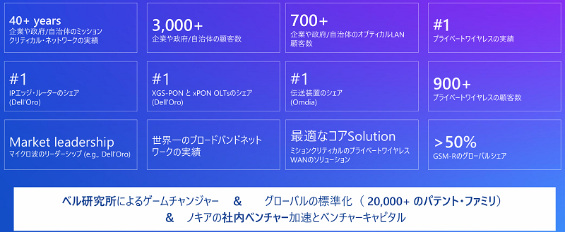 ノキアは、企業や政府/自治体インフラ系向けのミッションクリティカル・ネットワークで40年以上の実績が有り、その顧客数は3,000以上を誇る。