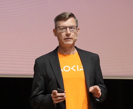 ノキアのストラテジー & テクノロジー フェロー 特別研究員であるハリー・ホルマー氏からは、モバイル5Gによる通信事業者の新たな収益モデルや、モバイルインフラにおけるAI活用のメリットおよび6Gの最新研究動向が解説された。