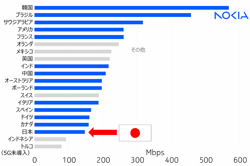 ホルマー氏は「現在、多くの国の5Gが素晴らしい平均データレートを達成している。300Mbps超え、または500Mbpsに到達している国もある。5Gは超高速な接続を提供したという意味で、成功を収めている。ノキアの無線機はこれまで、GDP上位20カ国のうち14カ国で展開をされているので、明らかにノキアの製品がこの世界各国の5Gのテクノロジーのパフォーマンスに貢献していることが見てとれる」とし、「日本のモバイルネットワークは素晴らしいが、日本の平均データレートをグローバルのベンチマークと比較していただくと、まだ改善の余地があるのが分かる。ノキアは、日本が5Gのメリットを本当の意味で享受できるように、日本のパートナー様と協力してグローバルのテクノロジーの活用を進めていきたい」と話している。